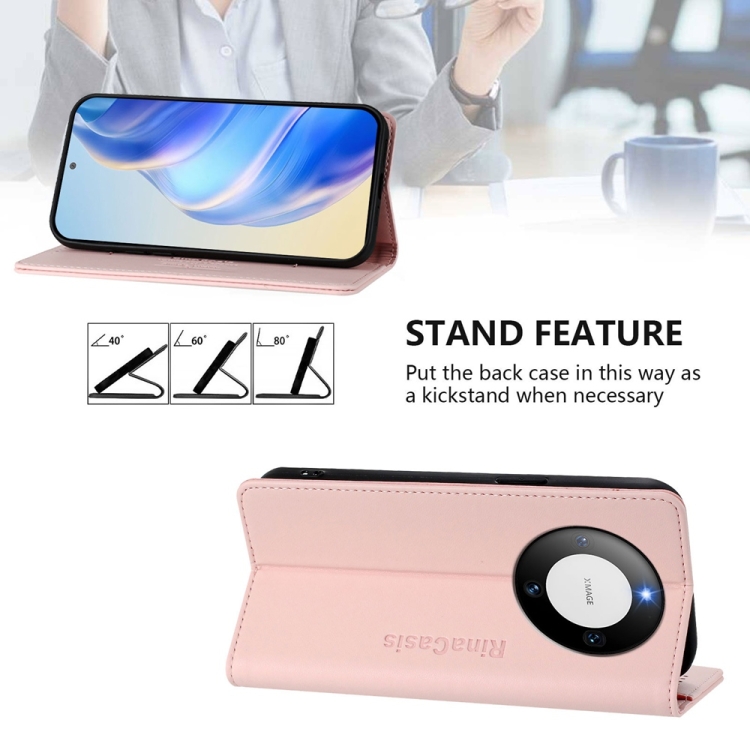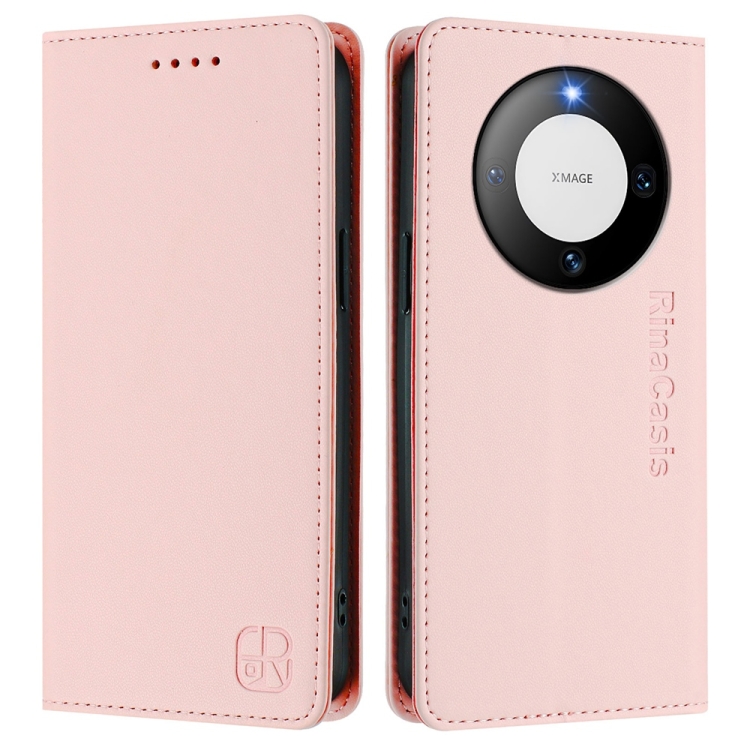 Funda de Cuero con Doble Pliegue y Succión Magnética para Huawei Mate 60 Rc01 (Rosa)