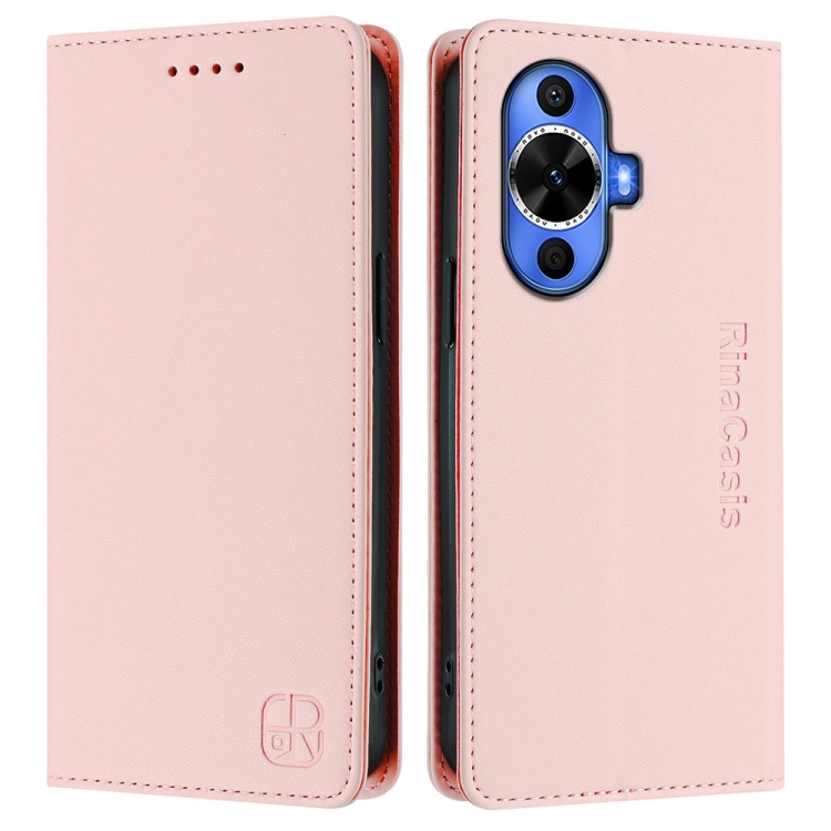 Funda de Cuero con Doble Pliegue y Succión Magnética para Huawei Nova 12S Global Rc01 (Rosa)