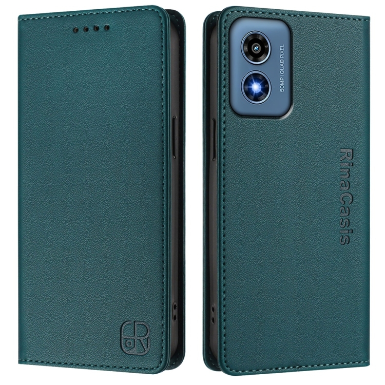 Funda de Cuero Motorola Moto G Play 2024 y Moto G 5G 2024 Rc01 con Doble Pliegue y Succión Magnética (Verde Oscuro)