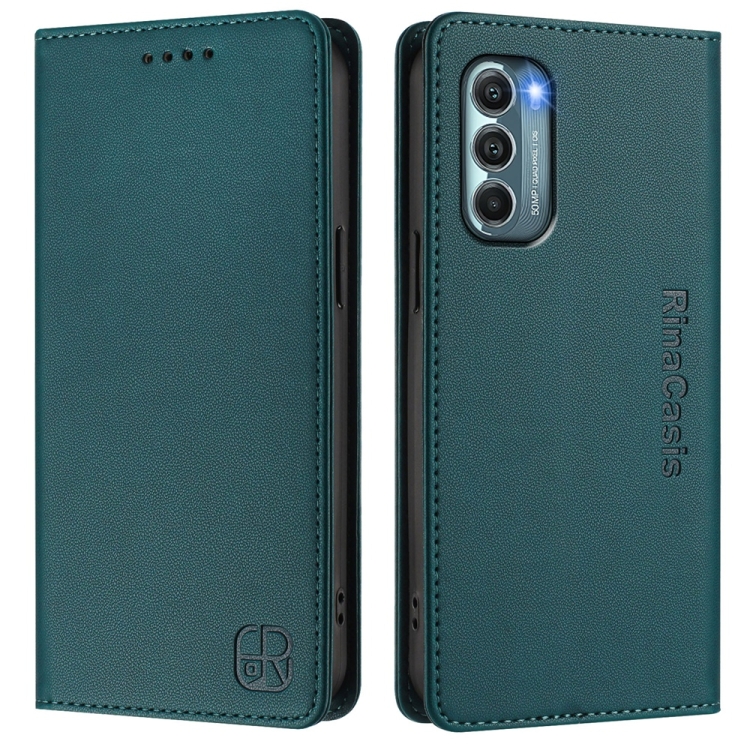 Funda de Cuero Motorola Moto G Stylus 5G 2022 Rc01 con Doble Pliegue y Succión Magnética (Verde Oscuro)