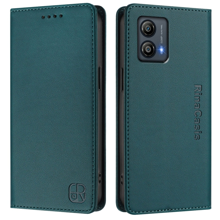 Funda de Cuero con Doble Pliegue y Succión Magnética para Motorola Moto G13/G23/G53 5G Rc01 (Verde Oscuro)