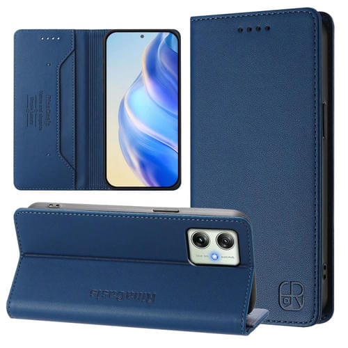 Funda de Cuero con Doble Pliegue y Succión Magnética para Motorola Moto G64 5G / G54 / G54 Power Rc01 (Azul Oscuro)