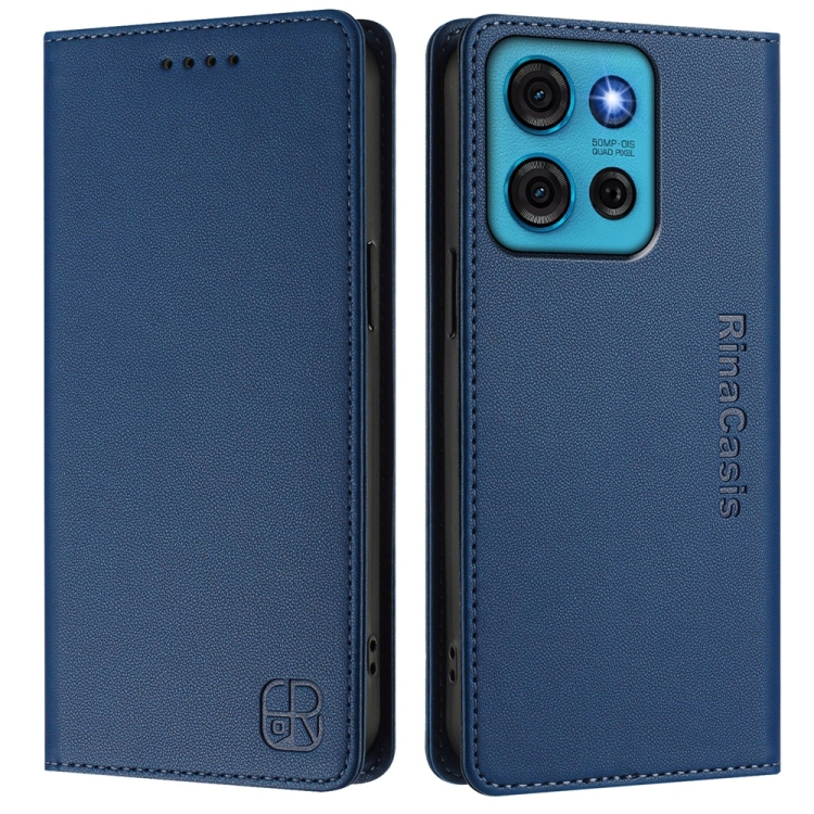 Funda de Cuero con Doble Pliegue y Succión Magnética para Motorola Moto G75 5G Rc01 (Azul Oscuro)