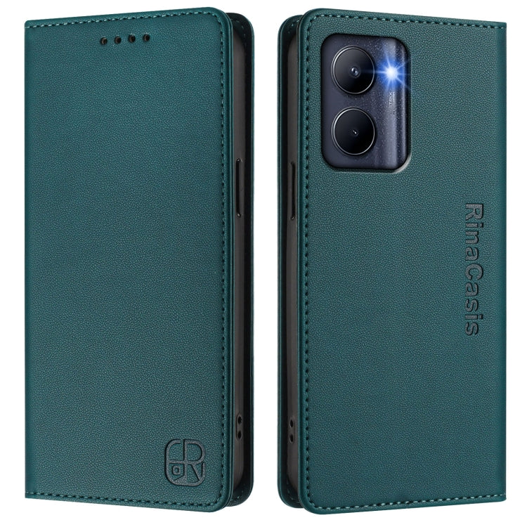 Funda de Cuero con Doble Pliegue y Succión Magnética para Realme C33 2022/2023 Global Rc01 (Verde Oscuro)