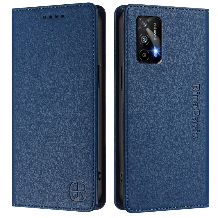 Funda de Cuero con Doble Pliegue y Succión Magnética para Realme Gt 5G/Gt Neo 5G Rc01 (Azul Oscuro)