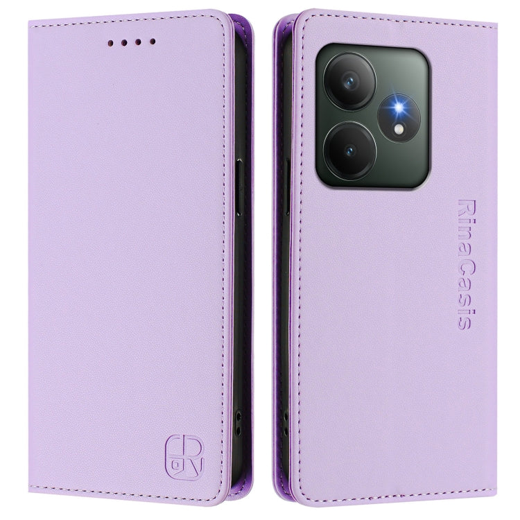 Funda de Cuero con Doble Pliegue y Succión Magnética para Realme Gt 6 5G / Gt 6T 5G Global Rc01 (Morado Claro)