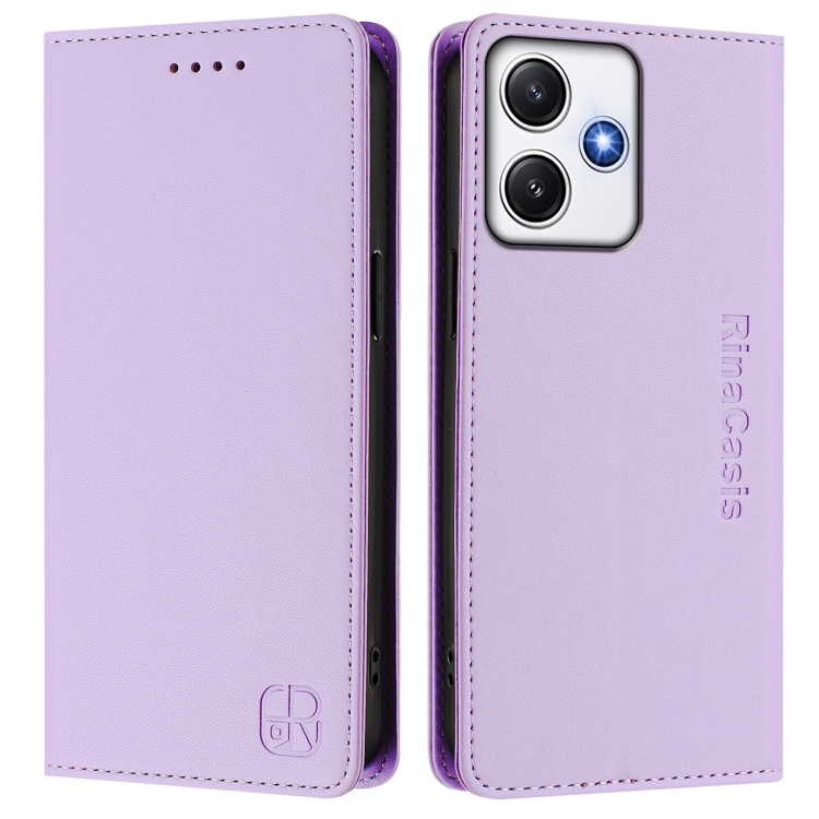 Funda de Cuero con Doble Pliegue y Succión Magnética para Redmi 12 5G/4G Global/Note 12R Rc01 (Morado Claro)
