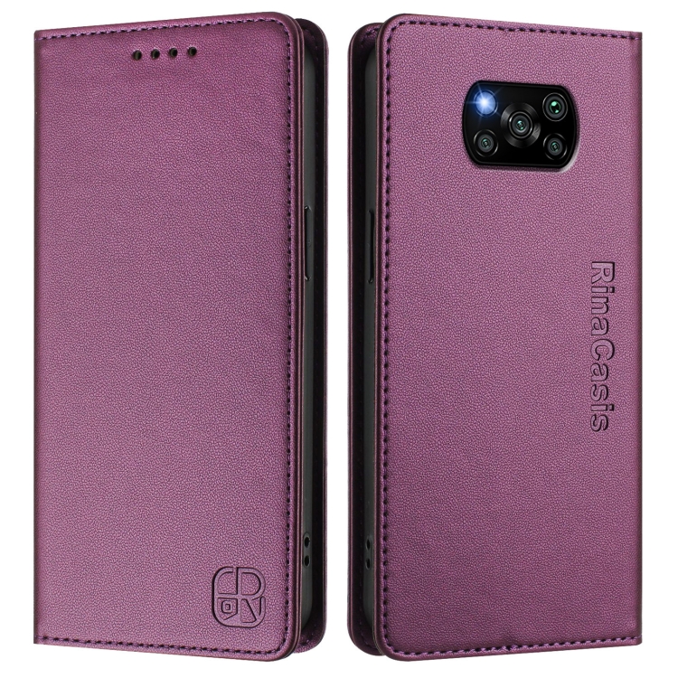 Funda de Cuero con Doble Pliegue y Succión Magnética para Teléfono Xiaomi Poco X3 / X3 Nfc / X3 Pro Rc01 (Violeta)