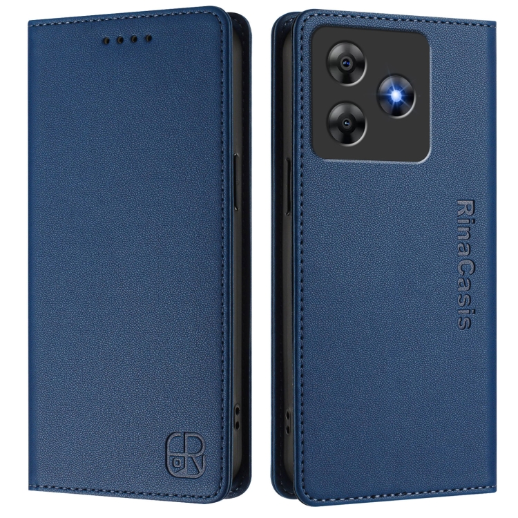 Funda de Cuero con Doble Pliegue y Succión Magnética Rfid para BlackView Wave 8C Rc01 (Azul Oscuro)