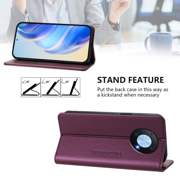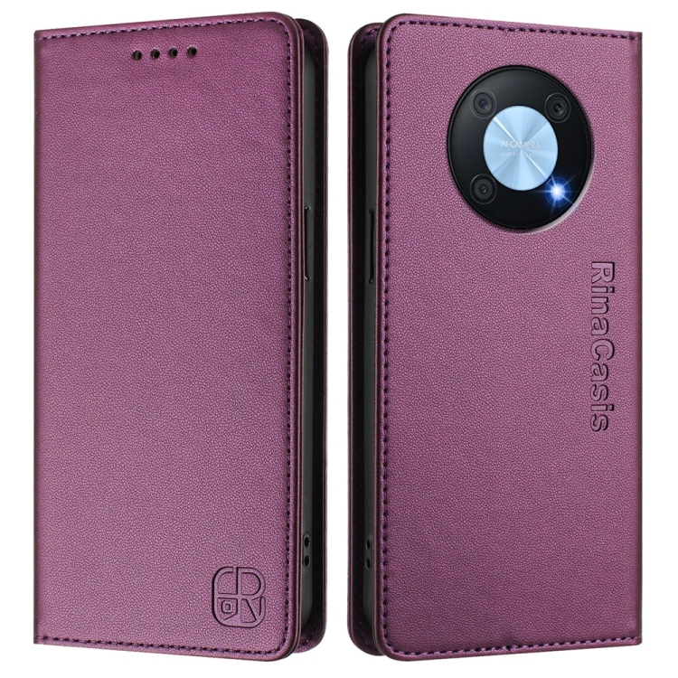 Funda de Cuero Huawei Enjoy 50 Pro Nova Y90 Rc01 Doble Pliegue Succión Magnética Rfid (Violeta)
