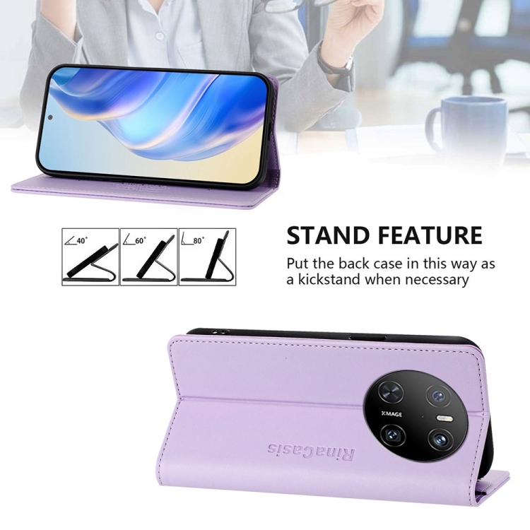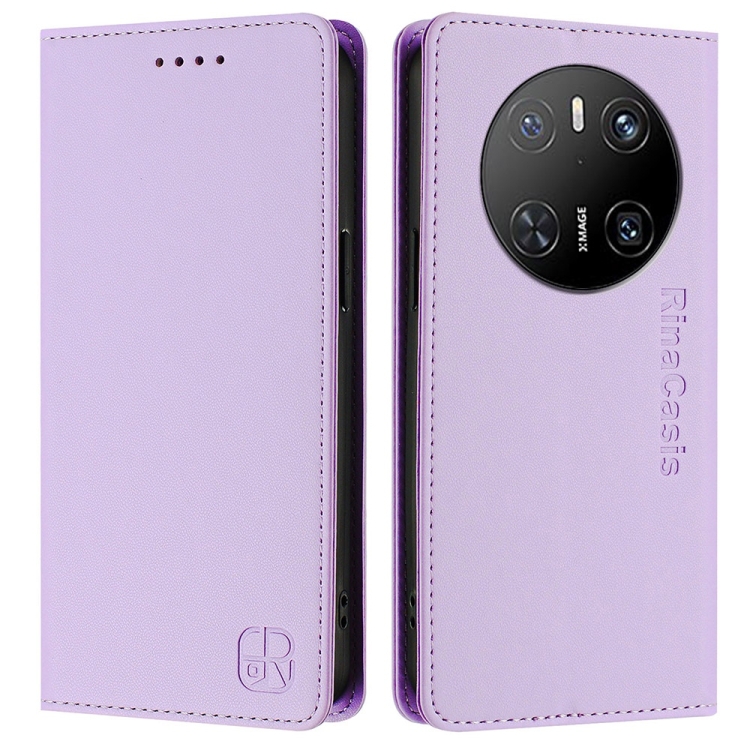 Funda de Cuero Huawei Mate 70 Rc01 con Doble Pliegue y Succión Magnética Rfid (Morado Claro)
