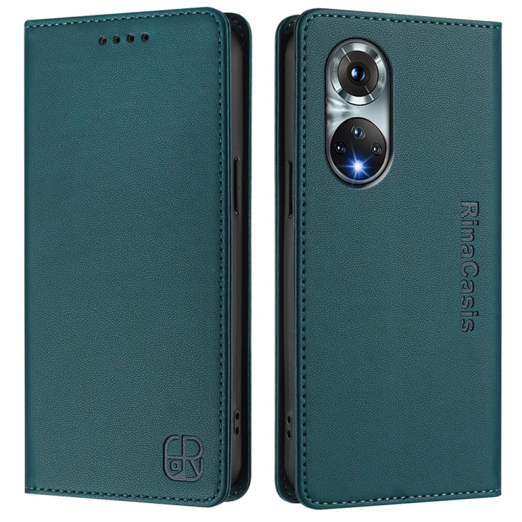 Funda de Cuero Huawei Nova 9 Rc01 con Doble Pliegue y Succión Magnética Rfid (Verde Oscuro)