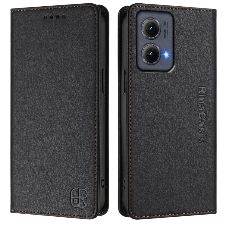 Funda de Cuero con Doble Pliegue y Succión Magnética RFID para Motorola Edge 5G 2024 Rc01 (Negra)