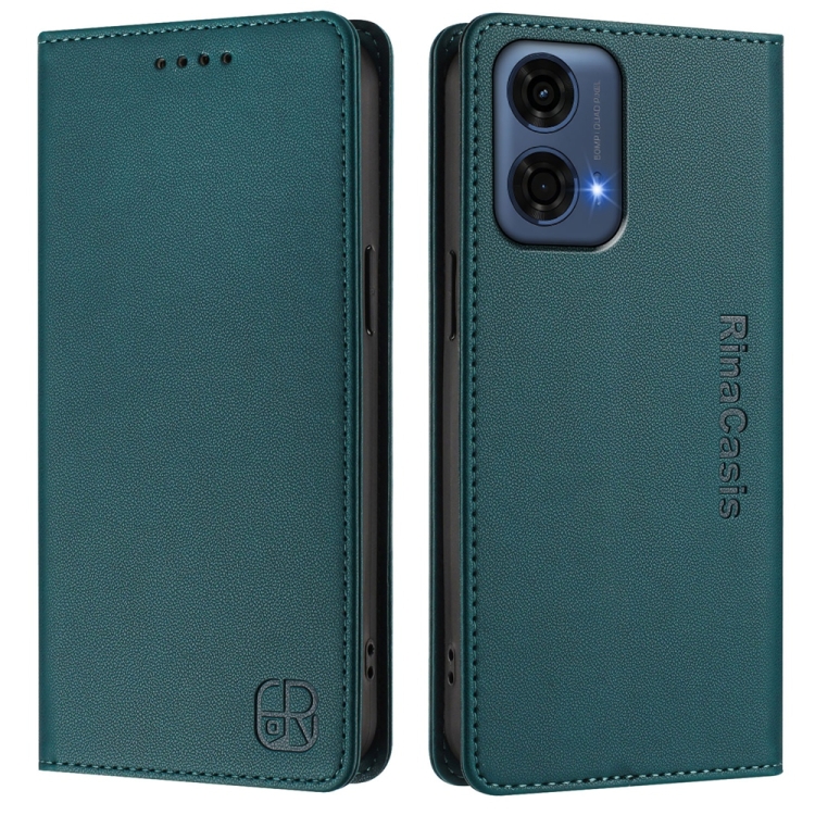 Funda de Cuero con Doble Pliegue y Succión Magnética Rfid para Motorola Moto G24 Power India Rc01 (Verde Oscuro)