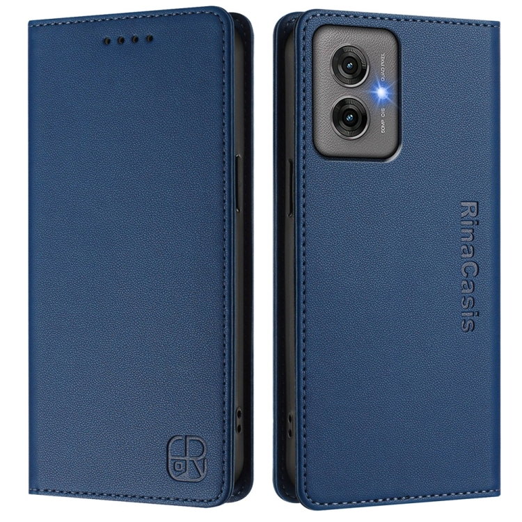 Funda de Cuero con Doble Pliegue y Succión Magnética Rfid para Motorola Moto G55 Rc01 (Azul Oscuro)