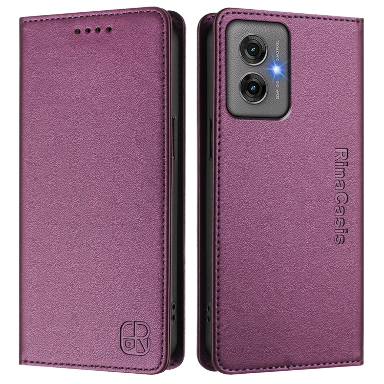 Funda de Cuero con Doble Pliegue y Succión Magnética RFID para Motorola Moto G55 Rc01 (Violeta)