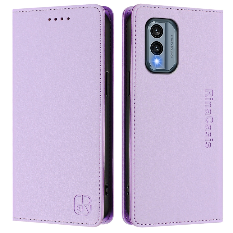 Funda de Cuero con Doble Pliegue y Succión Magnética Rfid para Nokia X30 5G Rc01 (Morado Claro)