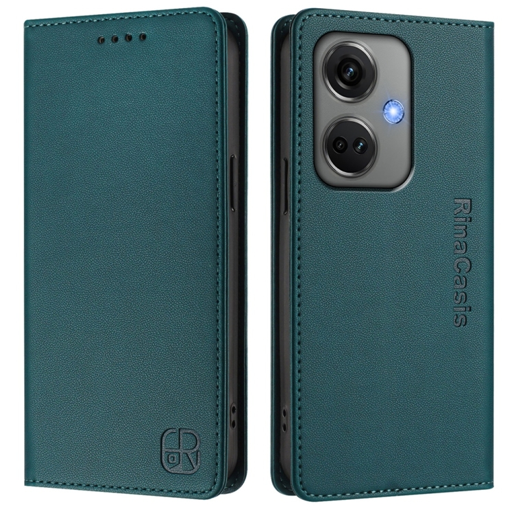 Funda de Cuero con Doble Pliegue y Succión Magnética RFID para OnePlus Nord CE3 RC01 (Verde Oscuro)