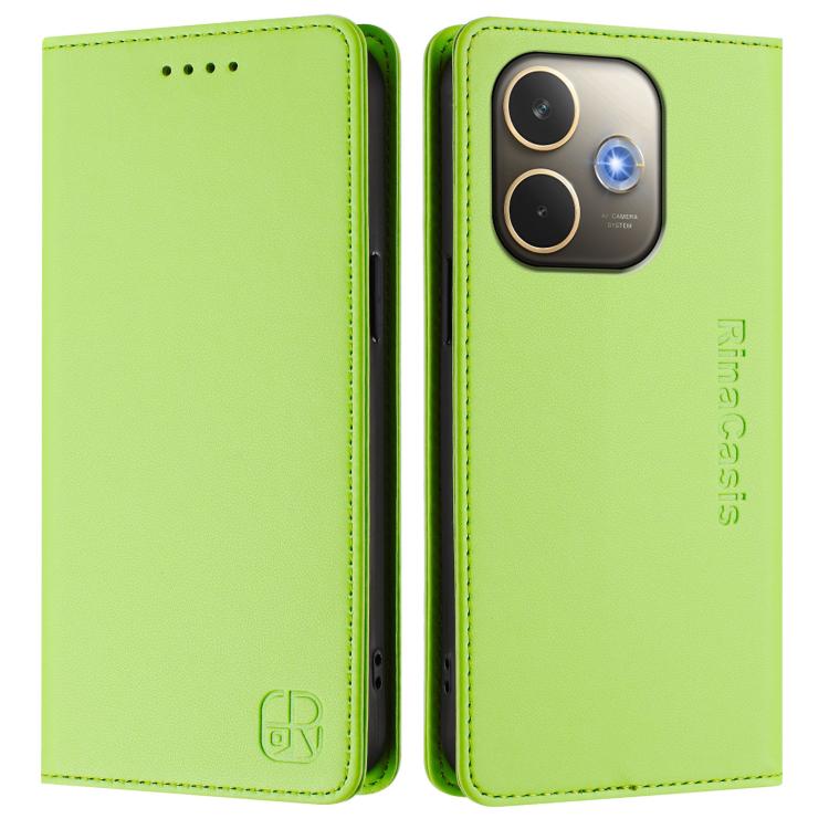 Funda de Cuero con Doble Pliegue y Succión Magnética Rfid para Oppo A5 Pro 5G Global Rc01 (Verde Hierba)