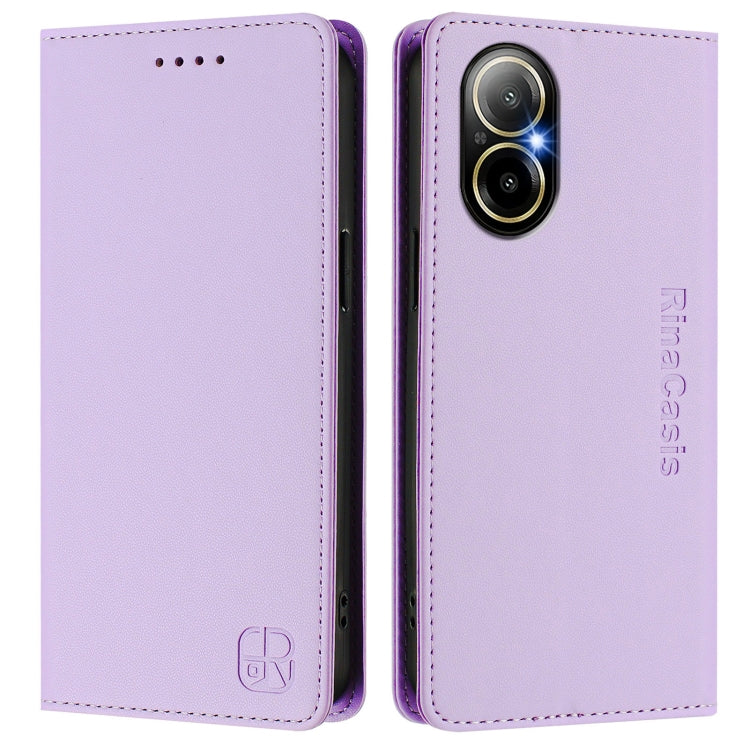 Funda de Cuero con Doble Pliegue y Succión Magnética Rfid para Realme C67 4G Global Rc01 (Morado Claro)