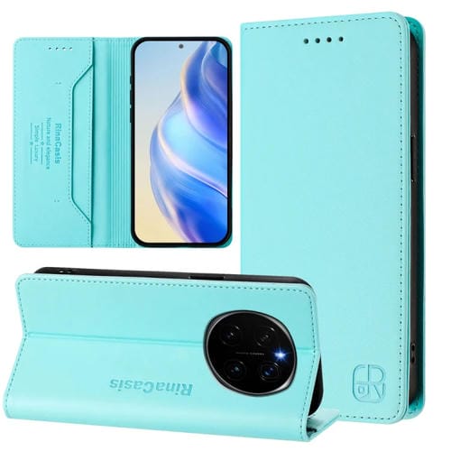 Funda de Cuero Rfid con Doble Pliegue y Succión Magnética para Honor Magic7 Pro Rc01 (Verde Menta)