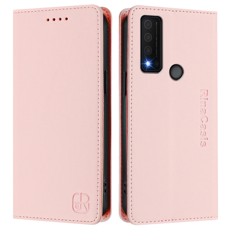 Funda de Cuero con Doble Pliegue y Succión Magnética Rfid para TCL 30 Xe 5G Rc01 (Rosa)