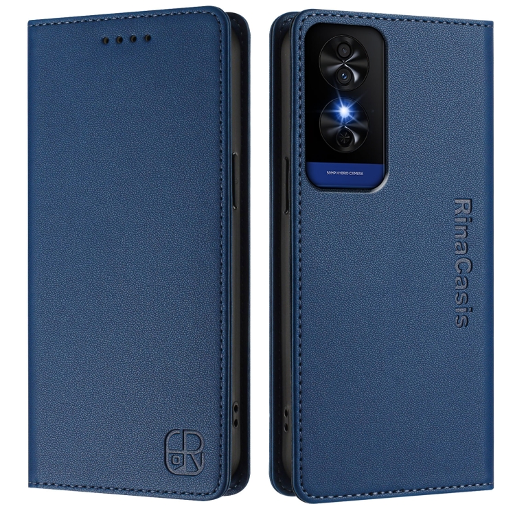 Funda de Cuero con Doble Pliegue y Succión Magnética Rfid para TCL 50 5G Xe Nxtpaper 5G Xe 5G Rc01 (Azul Oscuro)