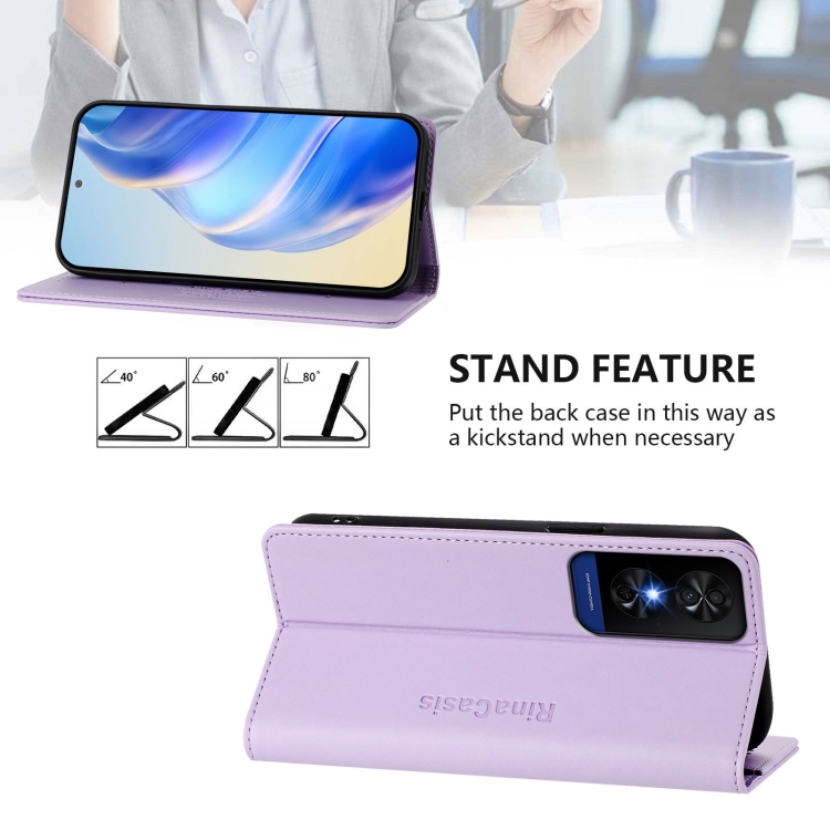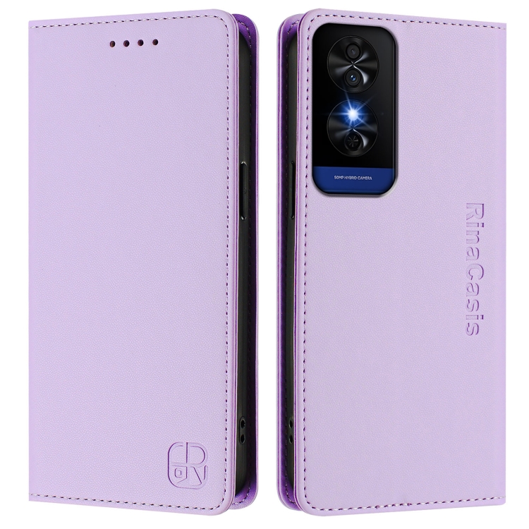 Funda de Cuero con Doble Pliegue y Succión Magnética Rfid para TCL 50 5G Xe Nxtpaper 5G Xe 5G Rc01 (Morado Claro)