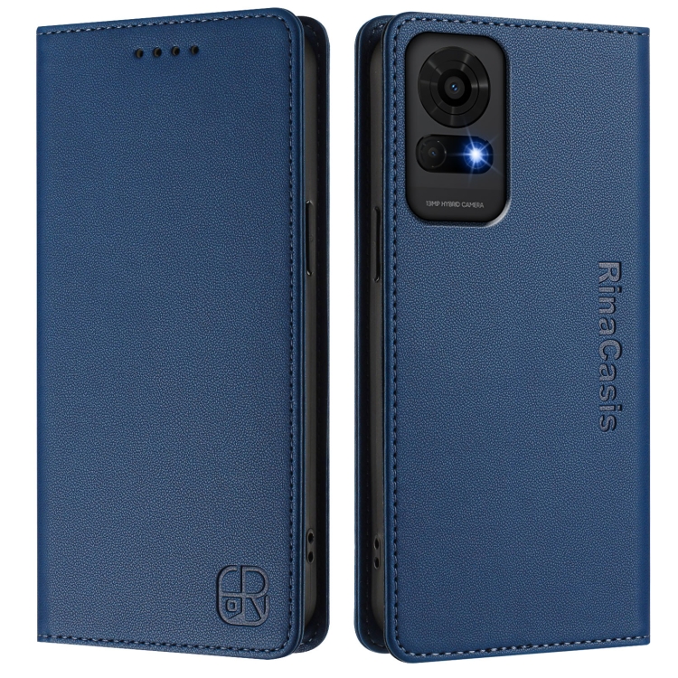 Funda de Cuero con Doble Pliegue y Succión Magnética Rfid para TCL 50 Le Rc01 (Azul Oscuro)
