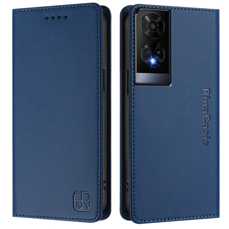 Funda de Cuero con Doble Pliegue y Succión Magnética Rfid para TCL 50 Xe Rc01 (Azul Oscuro)