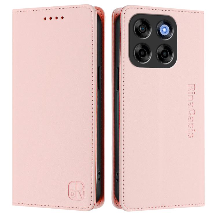 Funda de Cuero con Doble Pliegue y Succión Magnética RFID para ZTE Blade V70 Vita Rc01 (Rosa)