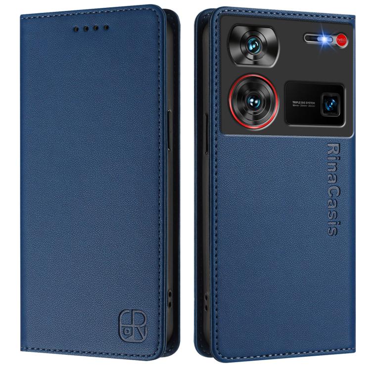 Funda de Cuero con Doble Pliegue y Succión Magnética RFID para ZTE Nubia Z60 Ultra Rc01 (Azul Oscuro)