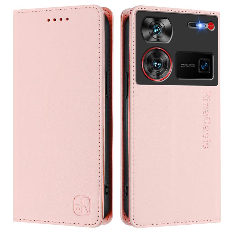 Funda de Cuero con Doble Pliegue y Succión Magnética Rfid para ZTE Nubia Z60 Ultra Rc01 (Rosa)
