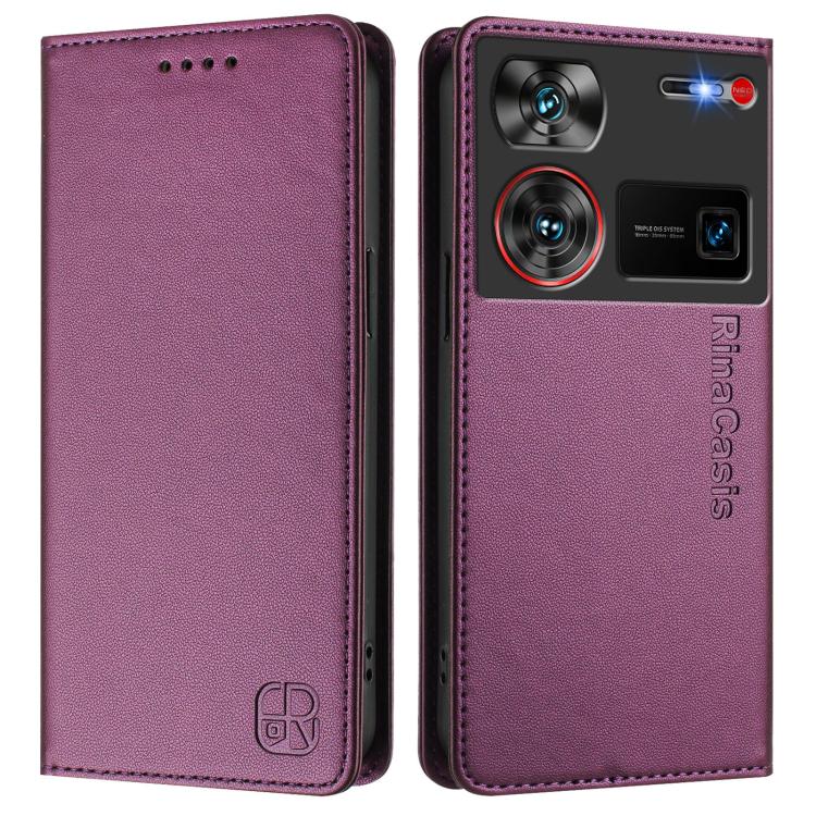 Funda de Cuero ZTE Nubia Z60 Ultra Rc01 con Doble Pliegue Succión Magnética Rfid (Violeta)