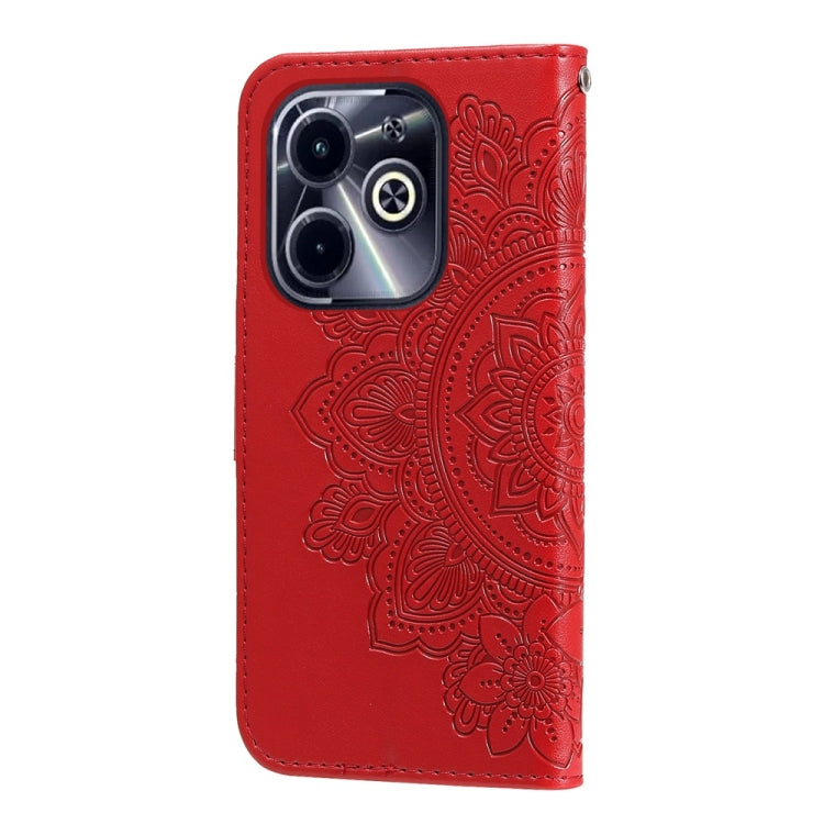 Funda de Cuero para Infinix Hot 40I con Estampado de Flores de Siete Pétalos (Rojo)