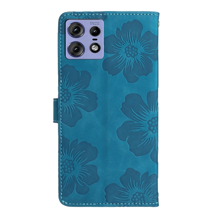 Funda de Cuero con Estampado de Flores en Relieve para Motorola Edge 50 Pro (Azul)