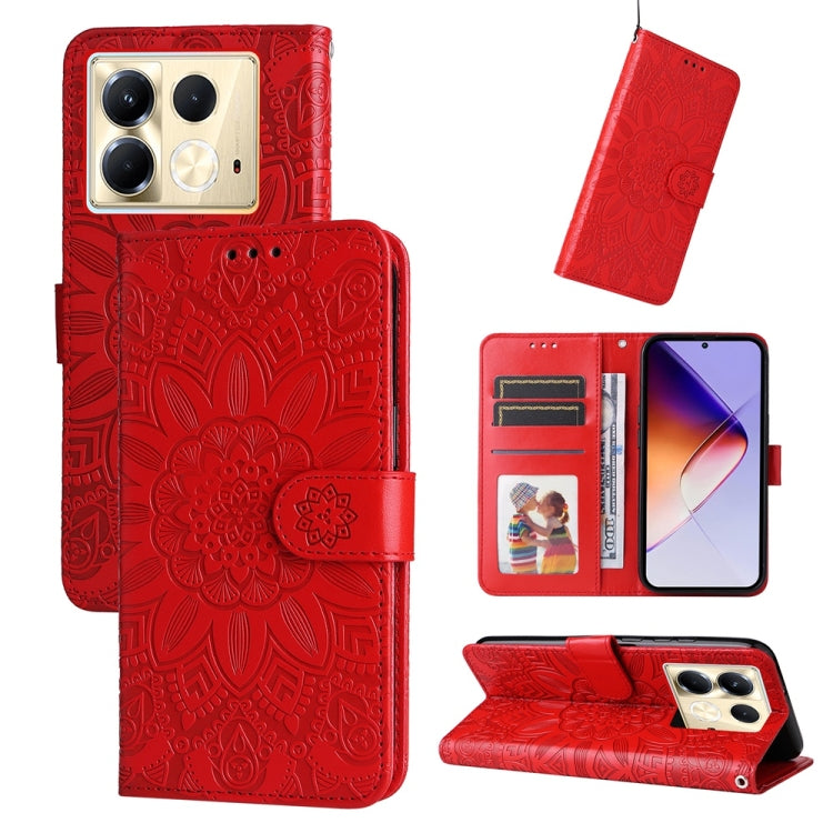 Funda de Cuero para Infinix Note 40 5G con Estampado de Girasol en Relieve (Rojo)