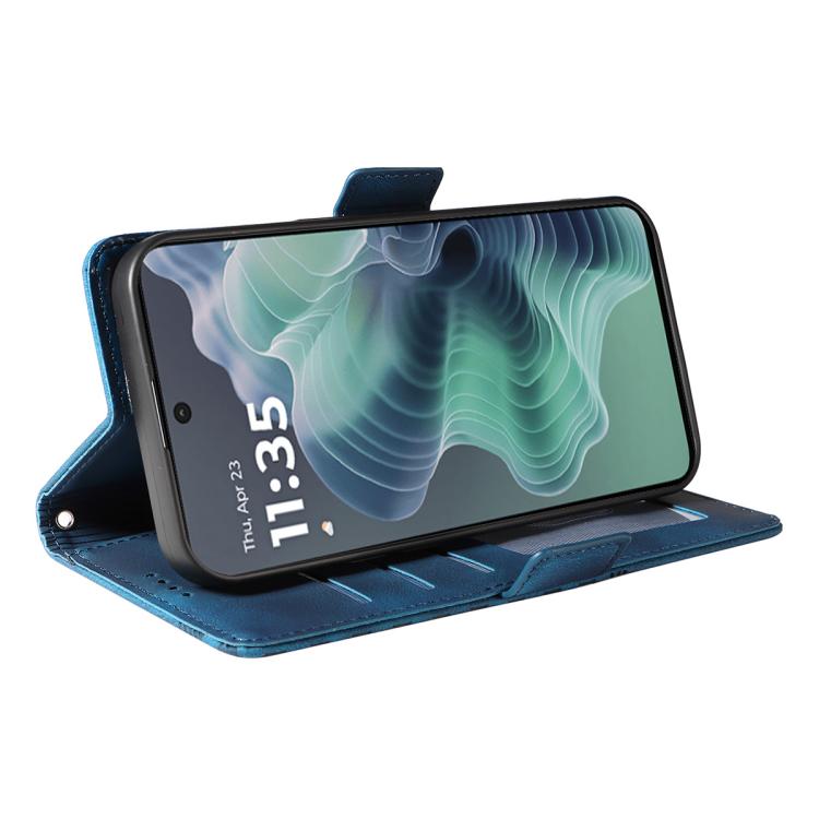 Funda de Cuero Enkay para Motorola Moto G35 con Estampado de Rombos y Estrellas y Película Protectora (Azul)