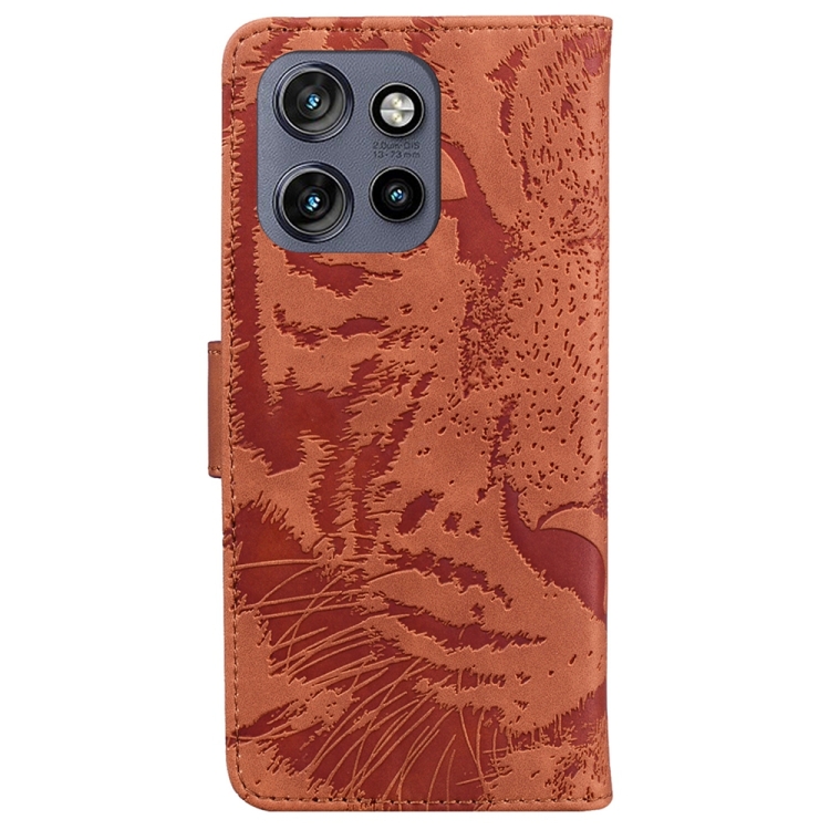 Funda de Cuero con Estampado de Tigre en Relieve para Motorola Edge 50 Neo 5G (Marrón)
