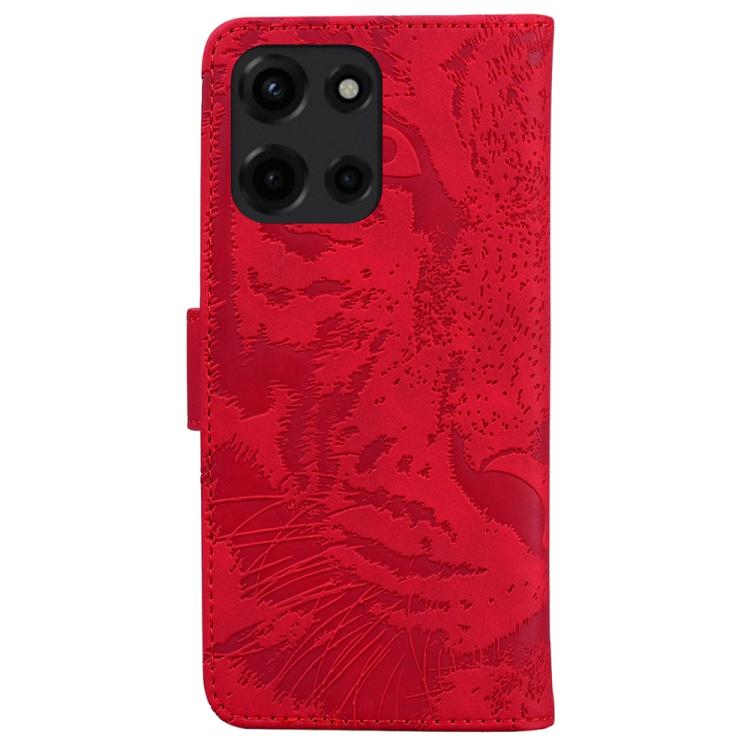 Funda de Cuero Motorola Moto G 5G (2025) con Estampado de Tigre (Rojo)