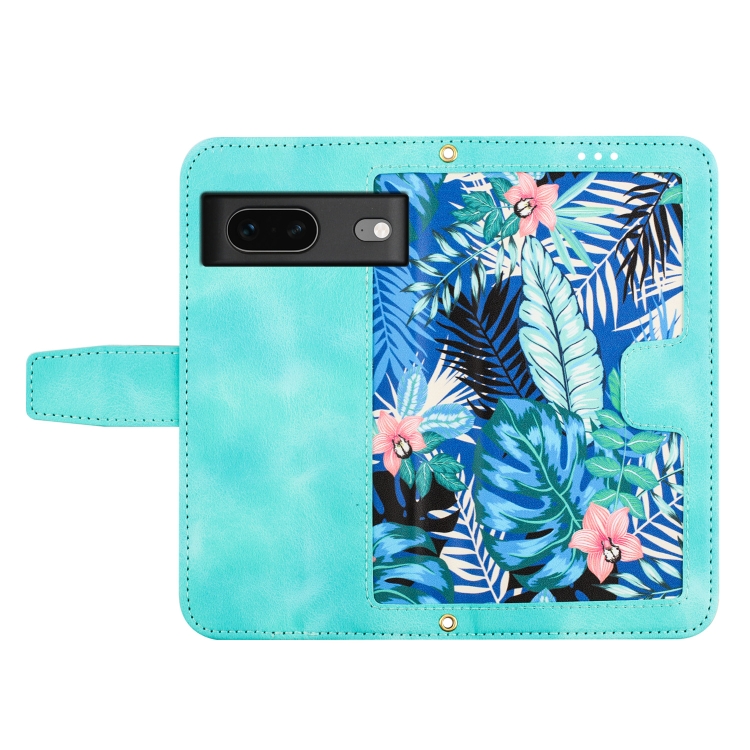 Funda de Cuero para Google Pixel 7 con Estampado Floral y Cordón (Verde)