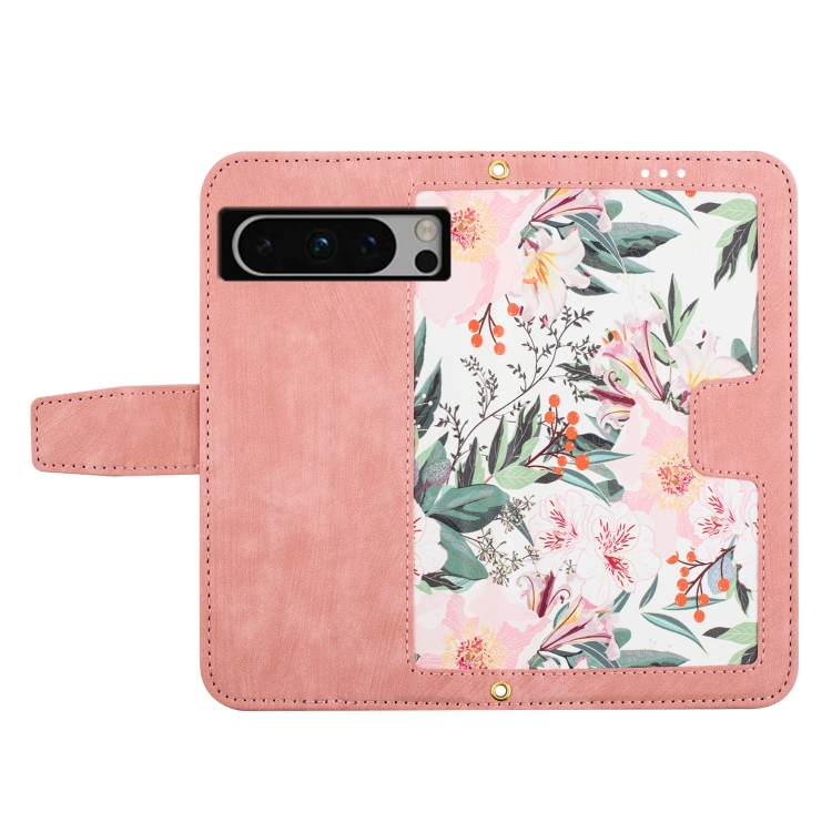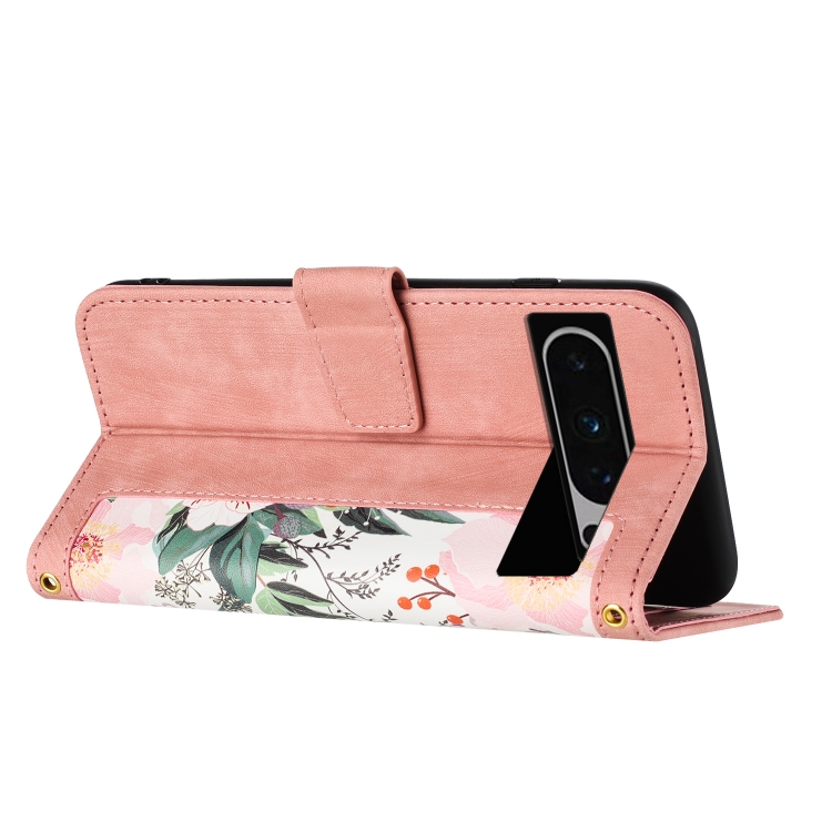 Funda de Cuero con Estampado Floral para Google Pixel 8 Pro con Cordón (Rosa)