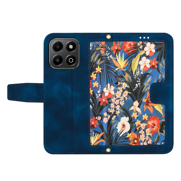 Funda de Cuero Honor 200 con Estampado Floral y Cordón (Azul Oscuro)
