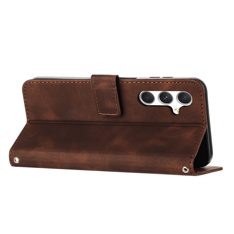 Funda Cuero Samsung Galaxy A56 5G Forma Triangular con Cordón Largo (Marrón)