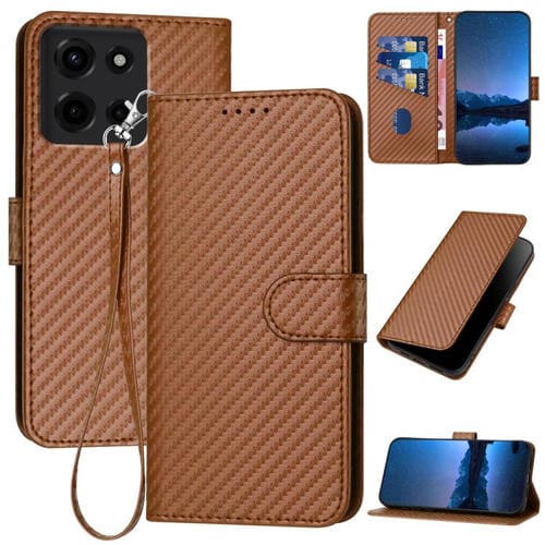 Funda de Cuero con Hebilla de Fibra de Carbono para Motorola Moto G 2025 Yx0070 con Cordón (Café)