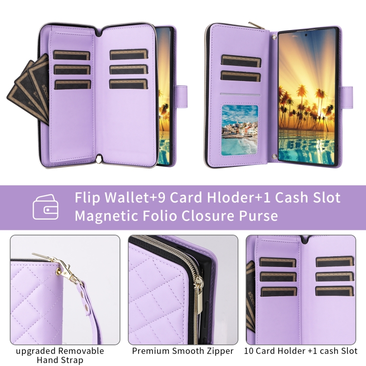 Funda Cuero Samsung Galaxy S23 5G Hebilla Torre Cremallera Rombo Cordón (Morado)