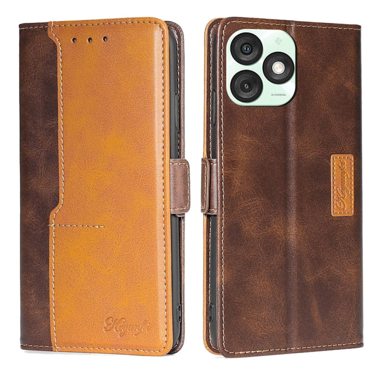 Funda de Cuero con Hebilla Lateral para Teléfono Itel A50 4G (Marrón Oscuro y Dorado)