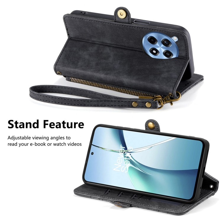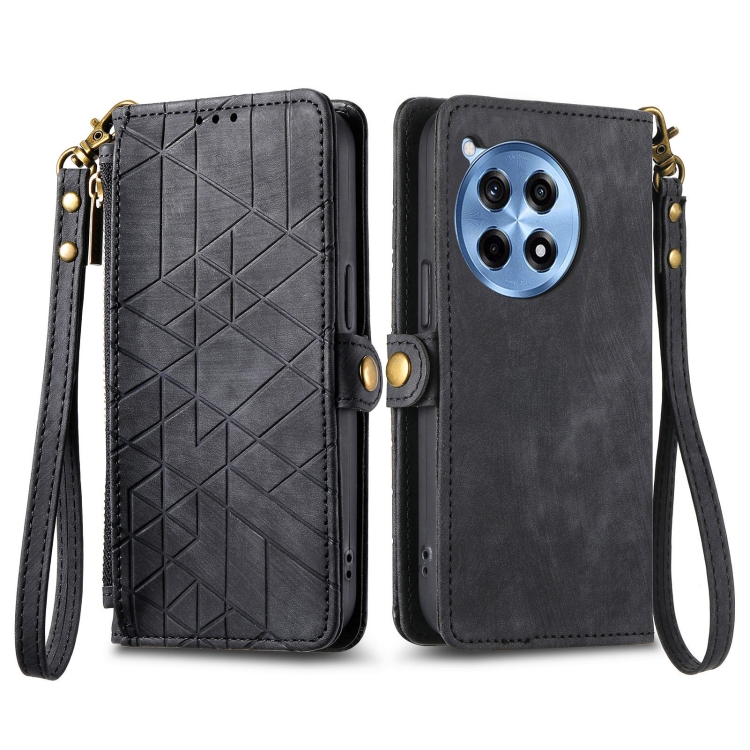 Funda de Cuero para OnePlus Ace 3 Pro con Hebilla Lateral y Cierre Geométrico (Negro)