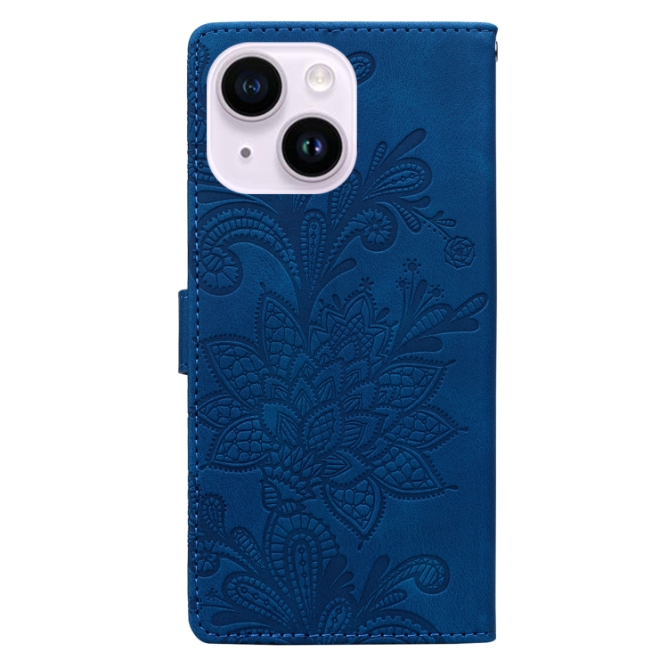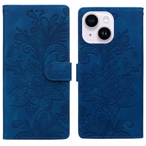 Funda de Cuero con Hebilla Magnética y Diseño Floral En Relieve para iPhone 14 Plus/15 Plus (Azul)