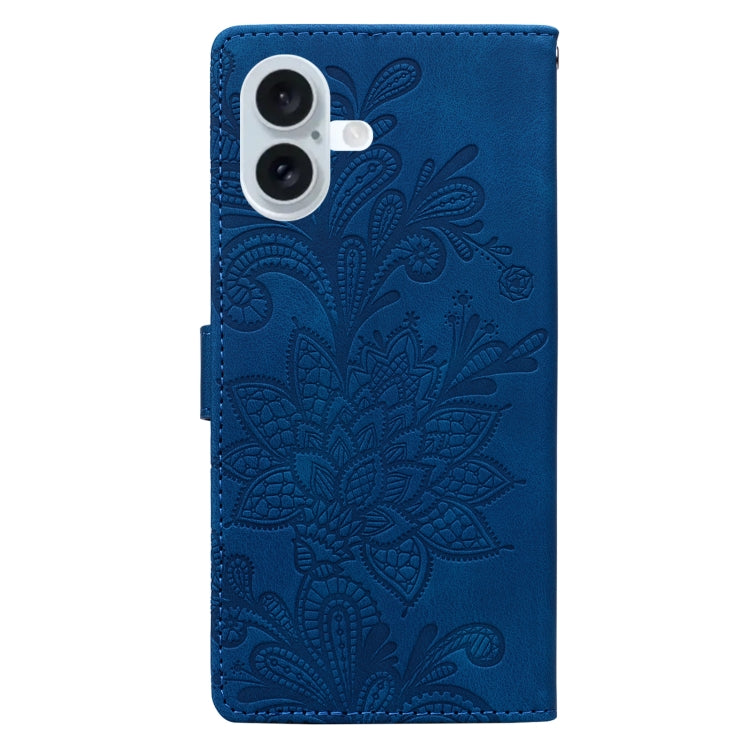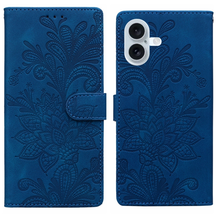 Funda de Cuero para iPhone 16 con Hebilla Magnética y Diseño Floral En Relieve (Azul)